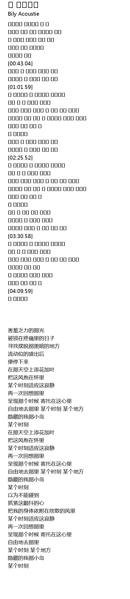 | [03:01.15] | 숨겨둔 나의 작은 섬 |