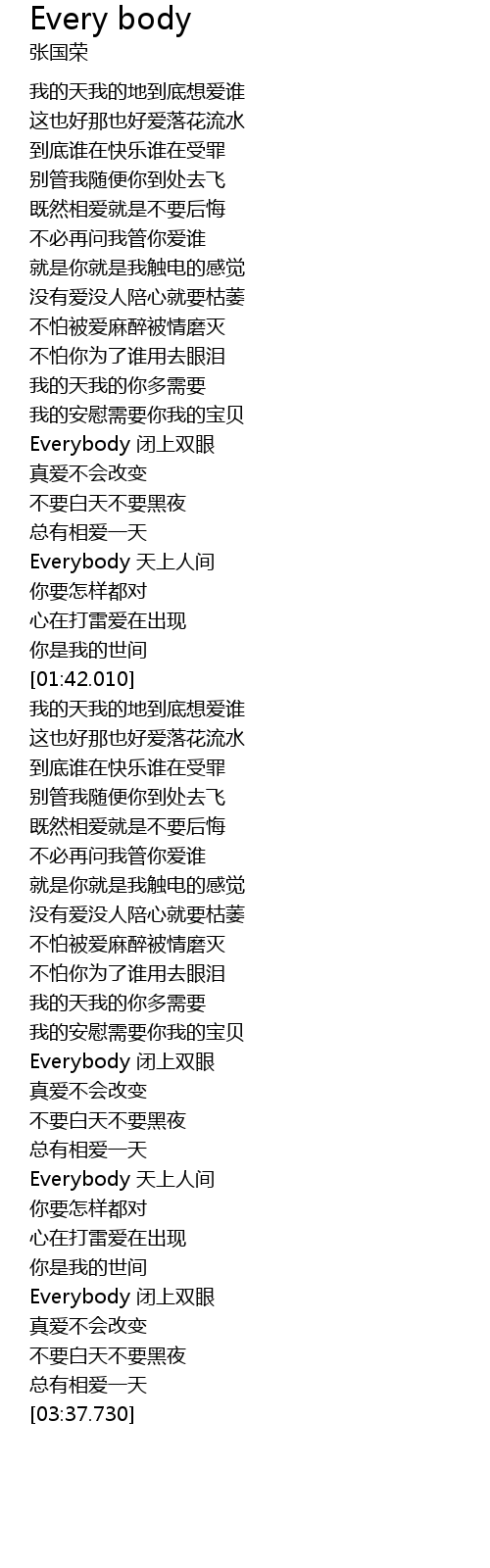 | [01:13.600] | Everybody bì shang shuāng yǎn |