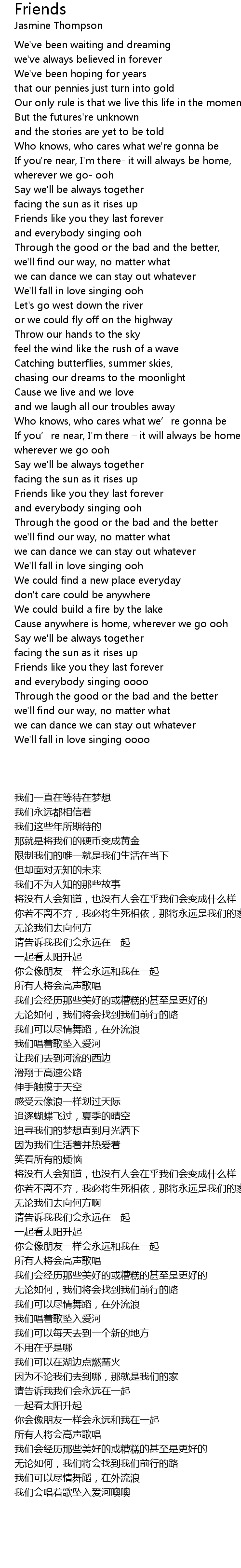 | [03:18.49] | Friends like you they last forever |