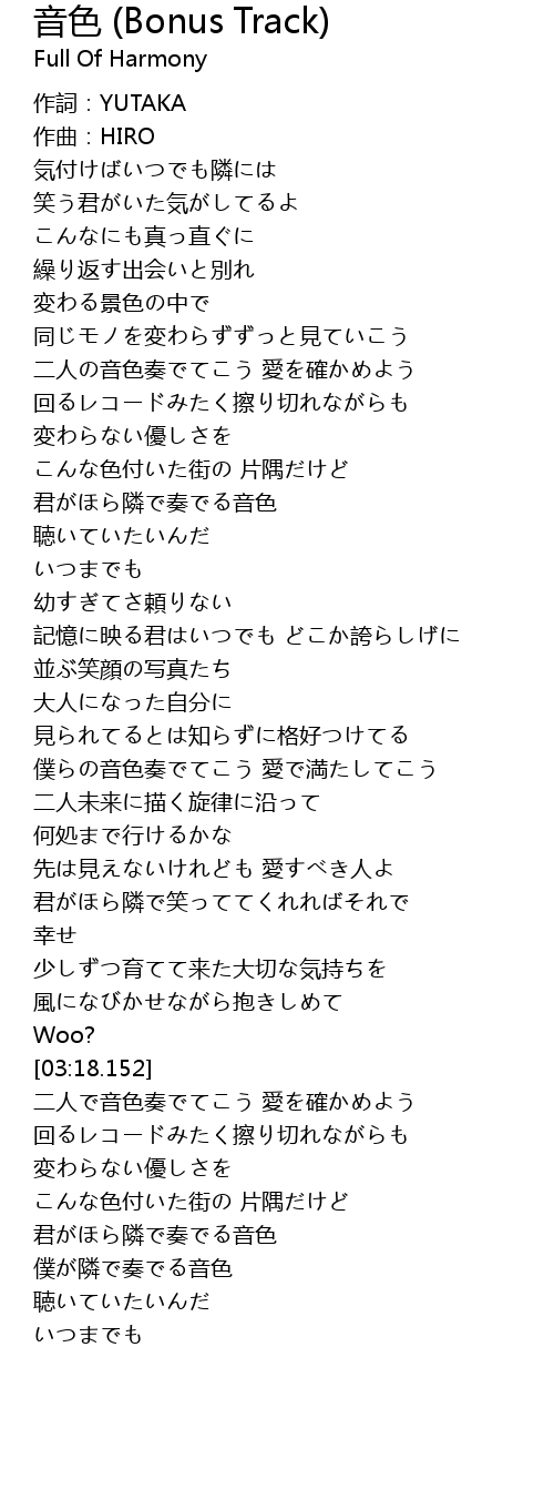 | Song | 音色 (Bonus Track) |