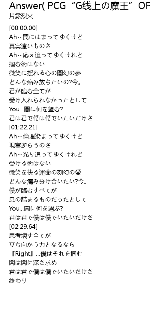 | Song | Answer( PCG“G线上の魔王”OP) |