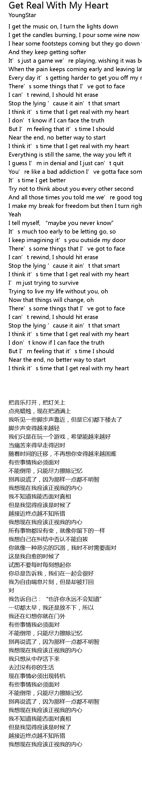 | [00:47.60] | I think it’s time that I get real with my heart |