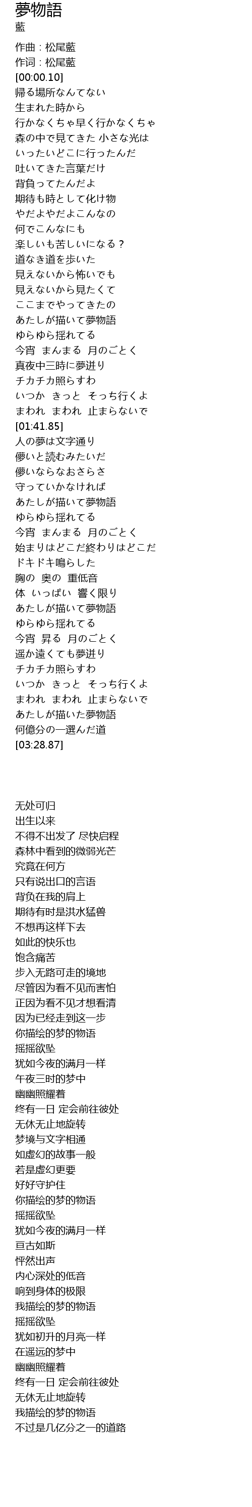 | [00:00.00] | 作曲:松尾藍 |