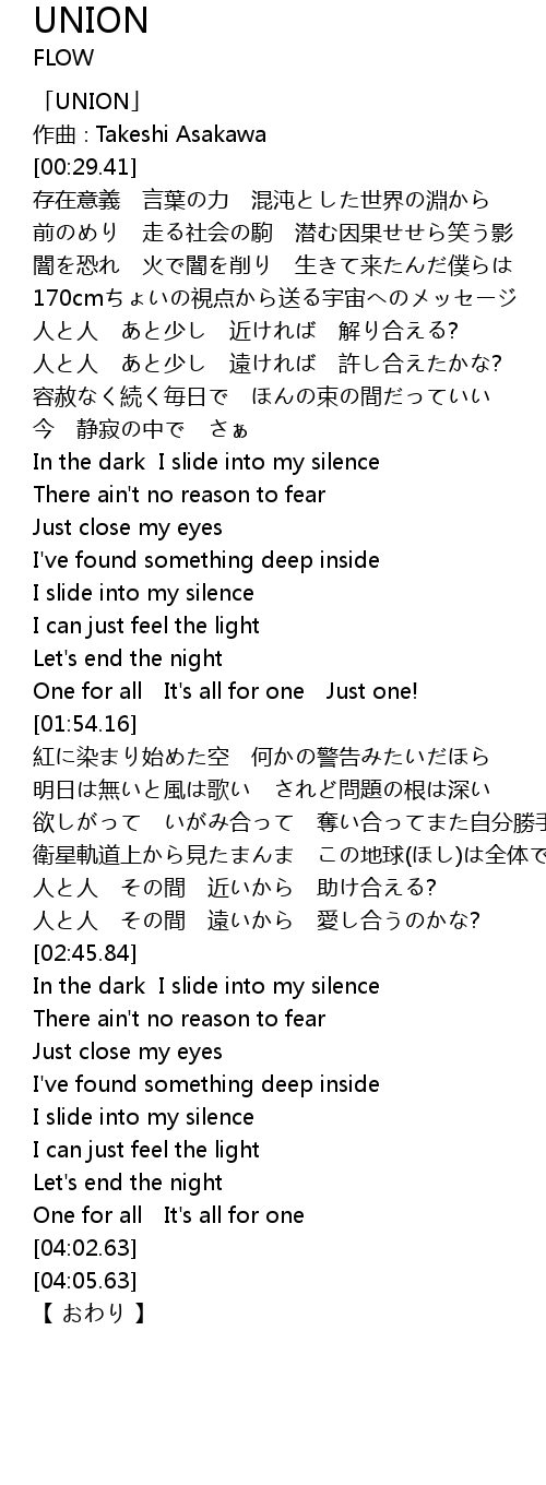 | [00:01.41] | 「UNION」 |