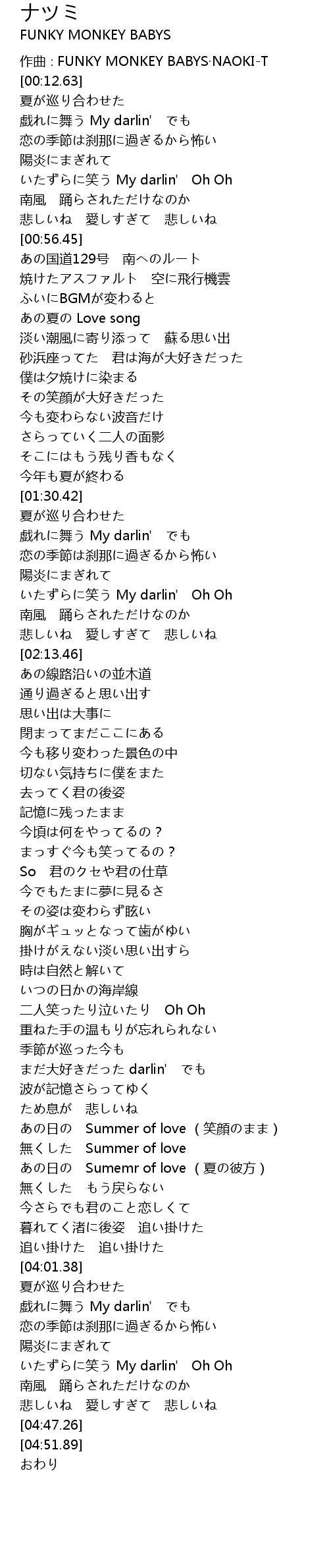| [00:08.63] | zuò qǔ FUNKY MONKEY BABYS NAOKIT |