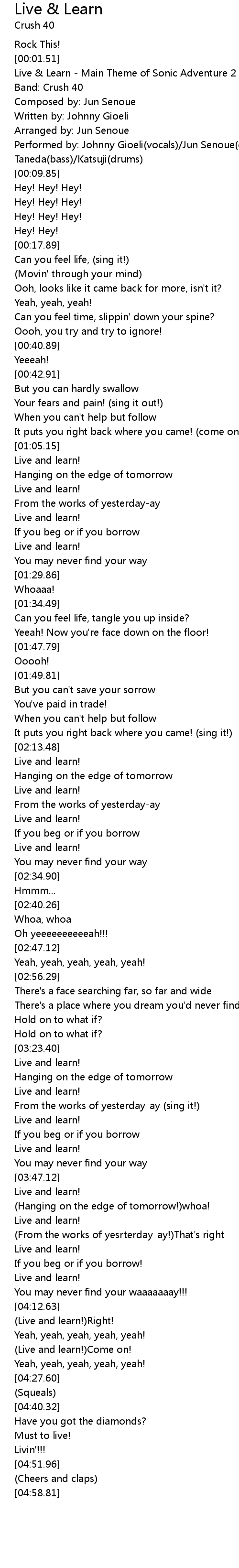 | [00:04.13] | Live & Learn - Main Theme of Sonic Adventure 2 |