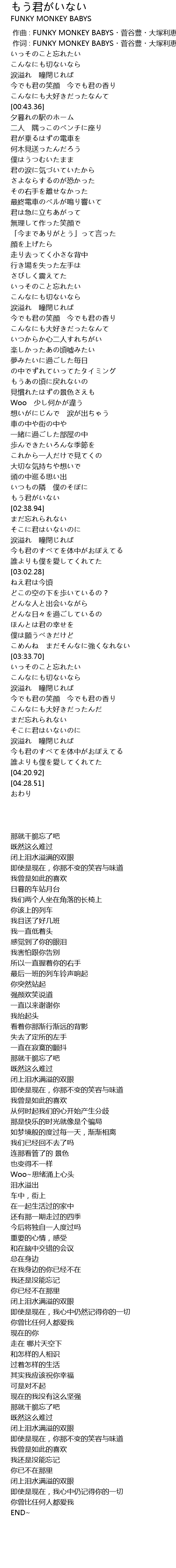 | [00:01.00] | 作词 : FUNKY MONKEY BABYS・菅谷豊・大塚利恵 |