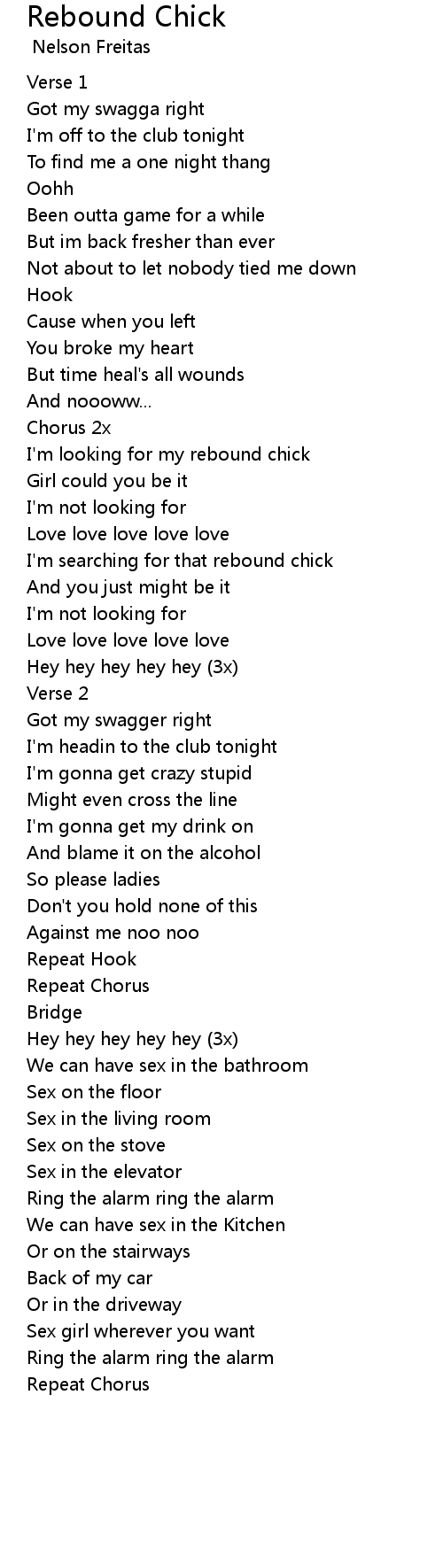 I'm searching for that rebound chick |