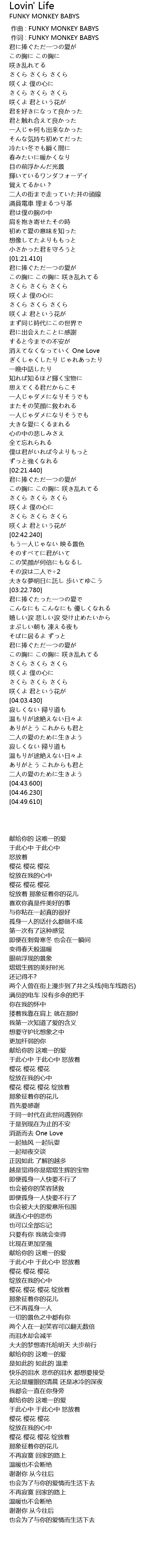| [00:01.00] | zuò cí : FUNKY MONKEY BABYS |