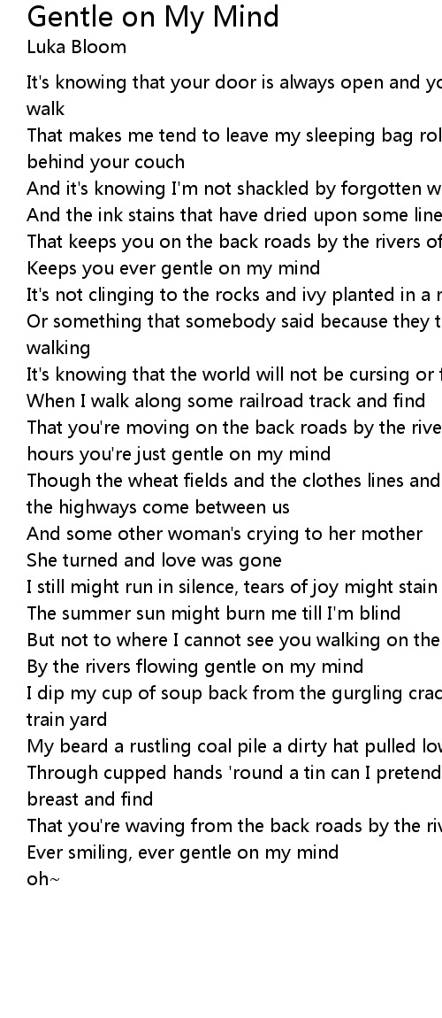 That you're moving on the back roads by the rivers of my memory for hours you're just gentle on my mind |