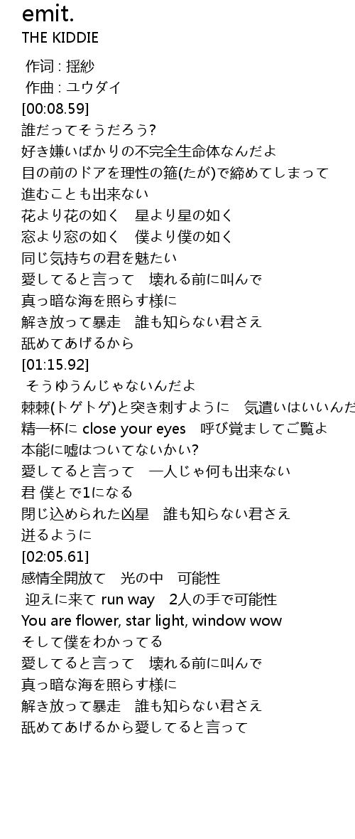 | [01:55.11] | 閉じ込められた凶星 誰も知らない君さえ |