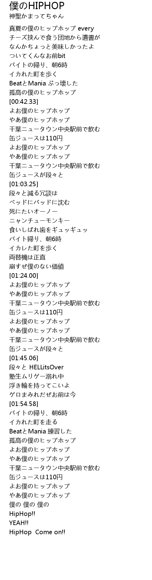 | [00:21.81] | 真夏の僕のヒップホップ every |