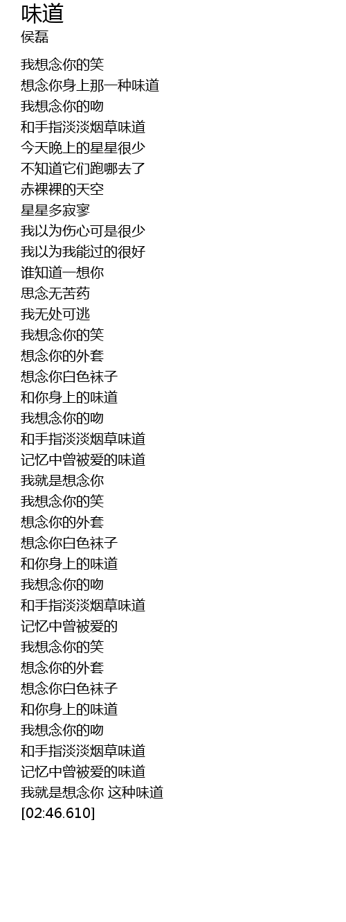 | [02:18.900] | 和手指淡淡烟草味道 |