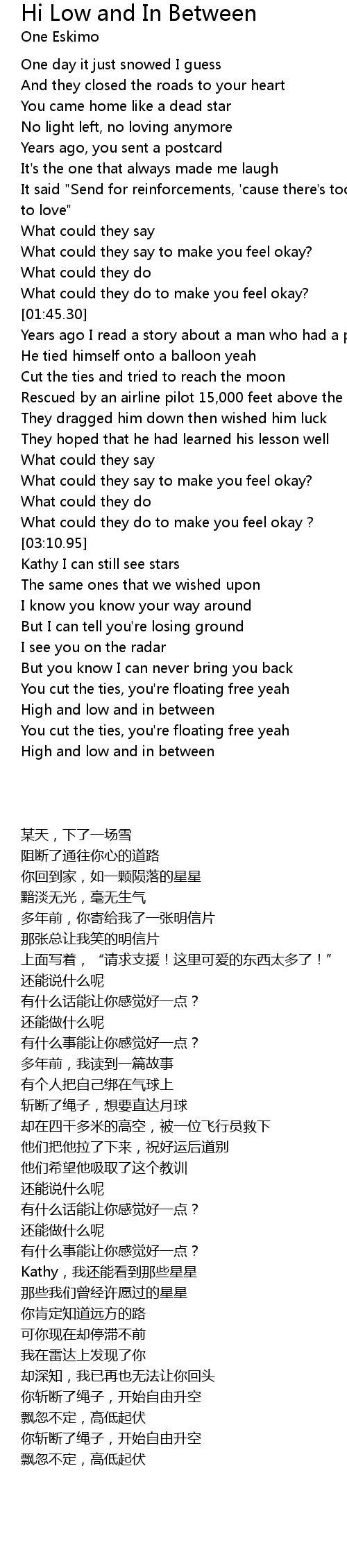 | [03:56.65] | You cut the ties, you're floating free yeah |