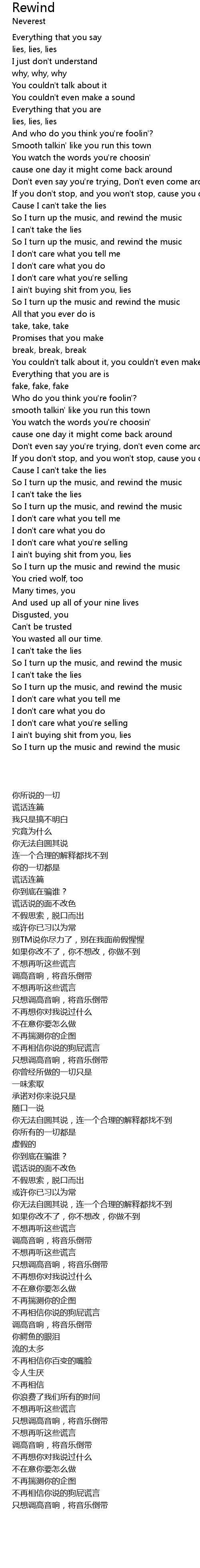 | [00:43.21] | So I turn up the music, and rewind the music |