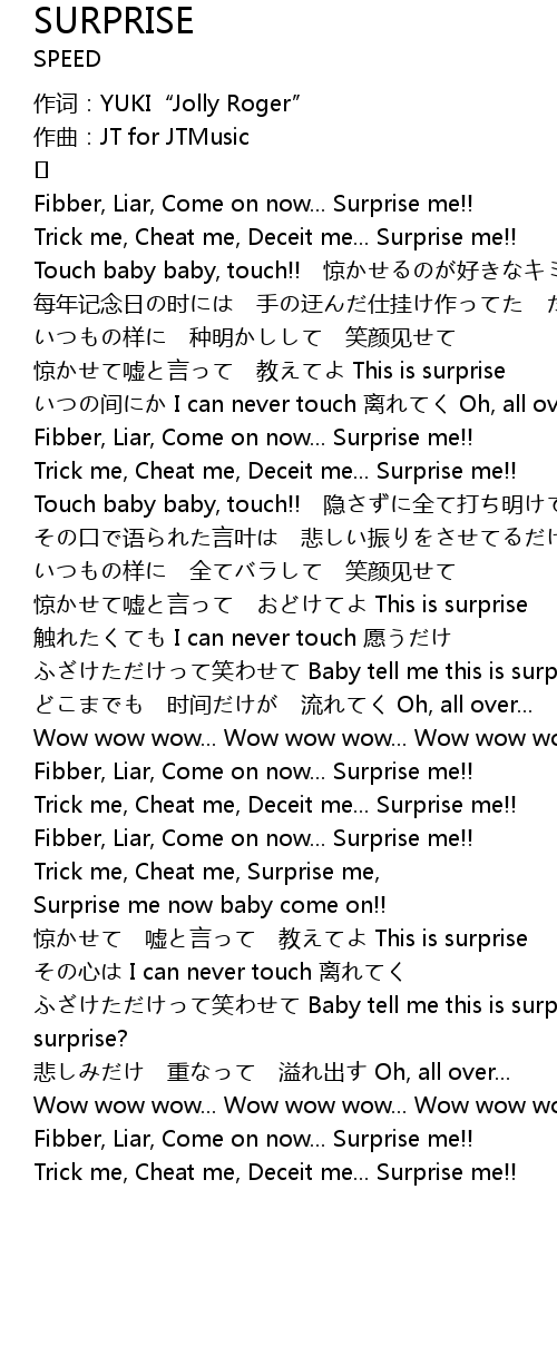| ふざけただけって笑わせて Baby tell me this is surprise Is this surprise? | |