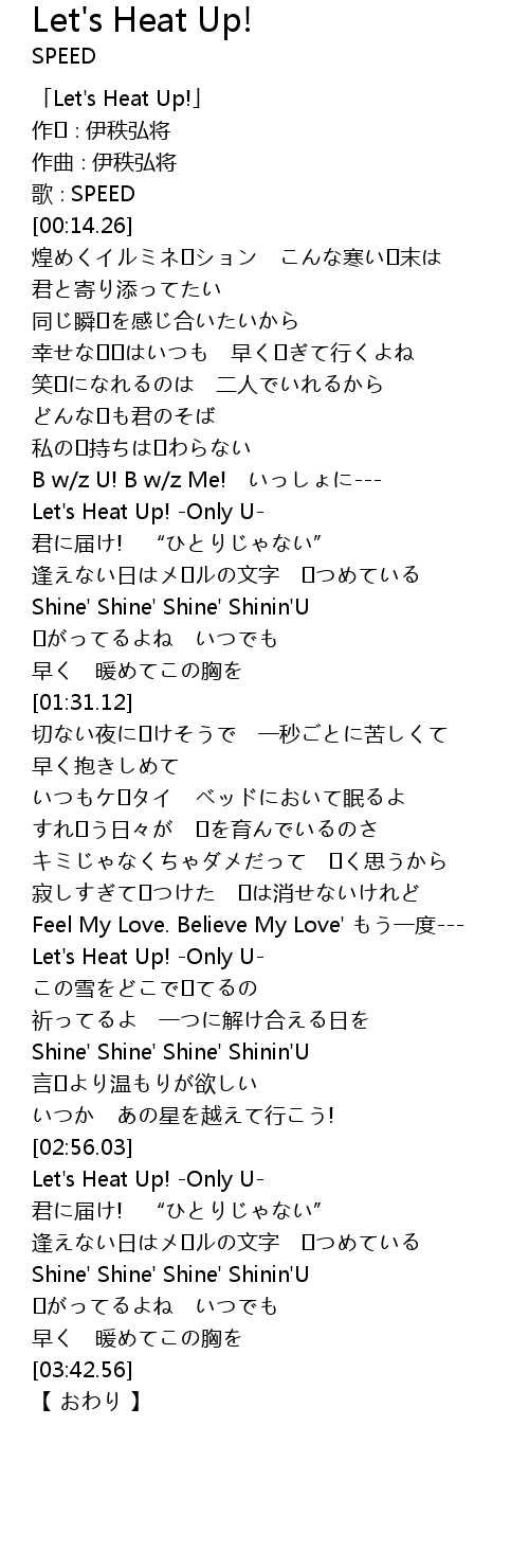 | [03:11.31] | Let's Heat Up! -Only U- |