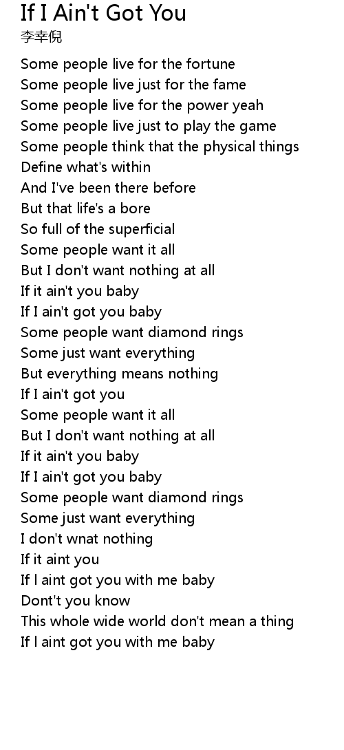 If I ain't got you baby |