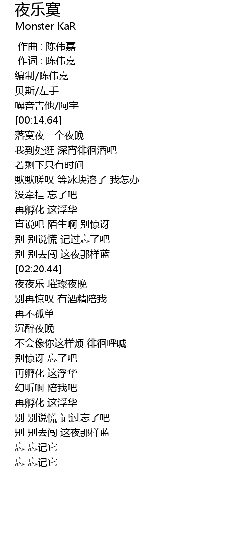 | [02:50.01] | 夜夜乐 璀璨夜晚 |