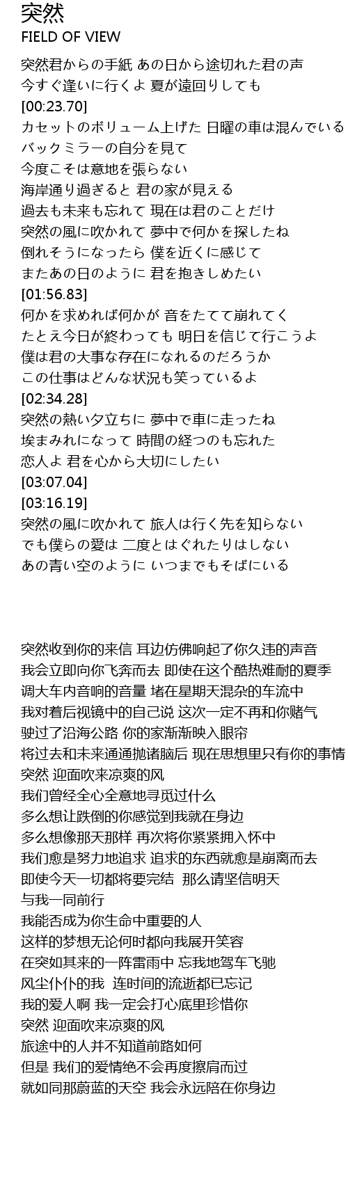| [00:01.24] | 突然君からの手紙 あの日から途切れた君の声 |
