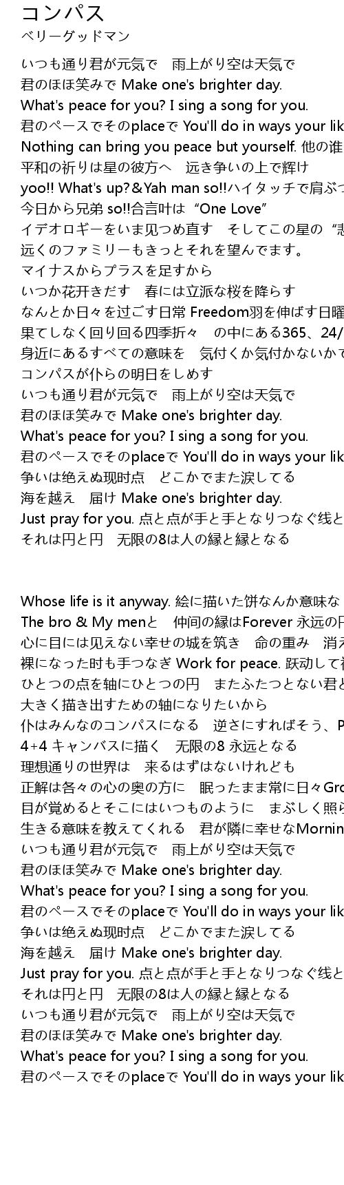 | 仆はみんなのコンパスになる 逆さにすればそう、PEACEになる | |