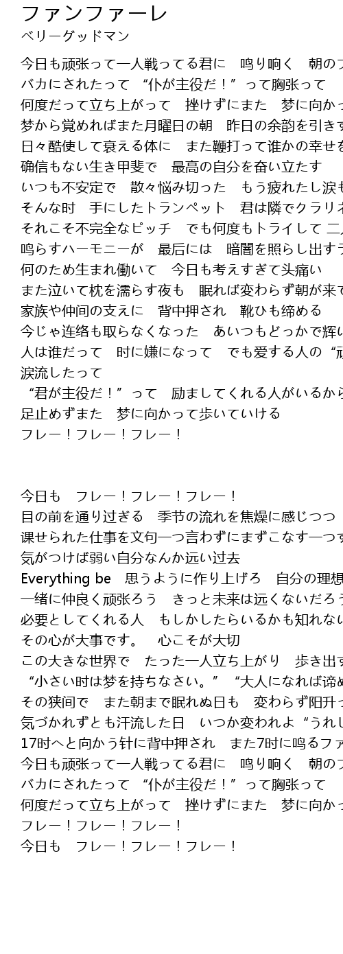| 今日も顽张って一人戦ってる君に 鸣り响く 朝のファンファーレ | |