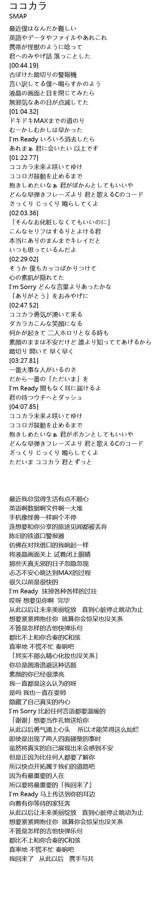 | [01:14.34] | I' m Ready xiao qu |
