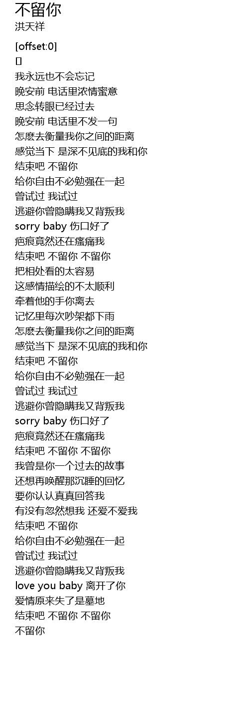 | [01:18.976] | 结束吧 不留你 不留你 |