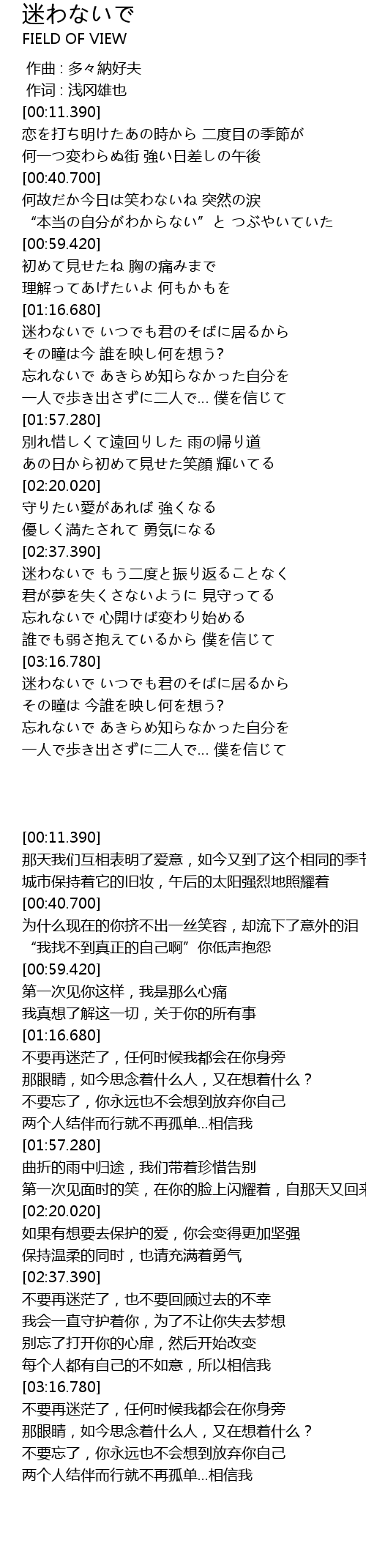 | [02:37.850] | 迷わないで もう二度と振り返ることなく |