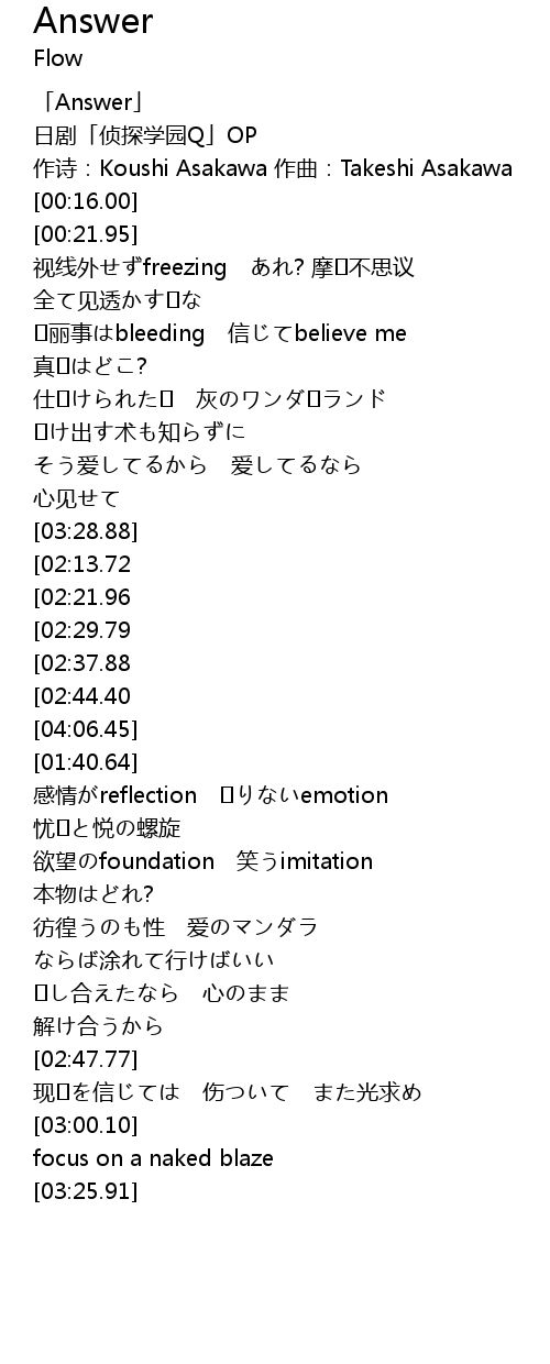 | [00:03.00] | 日剧「侦探学园Q」OP |