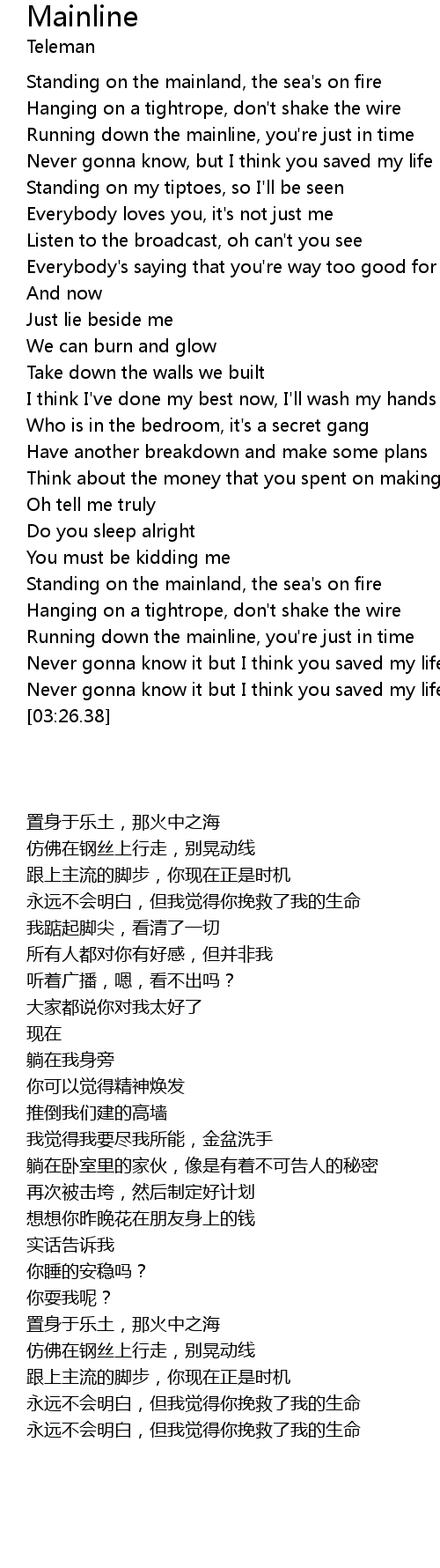 | [02:47.01] | Standing on the mainland, the sea's on fire |