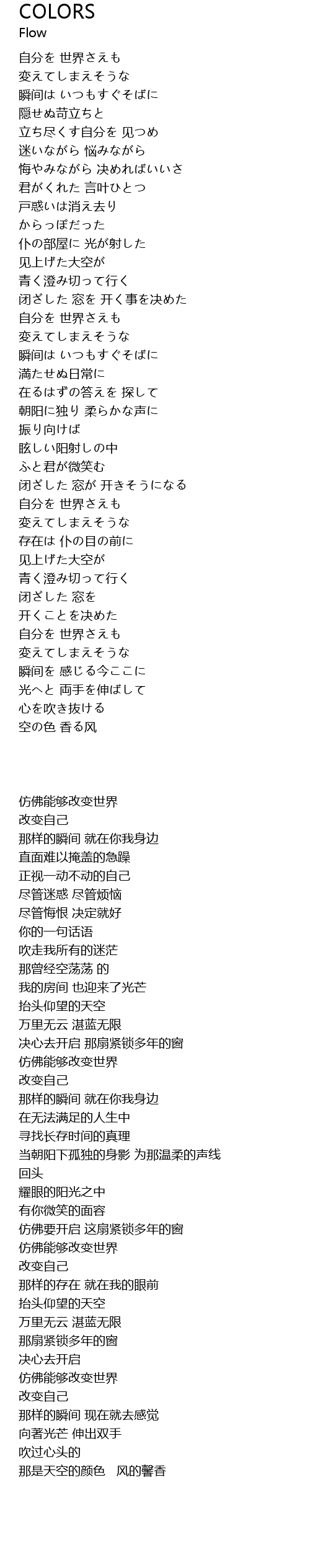 | [03:24.65] | 空の色 香る风 |