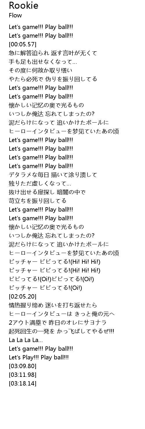 | [03:06.01] | Let' s Play!!! Play ball!!! |