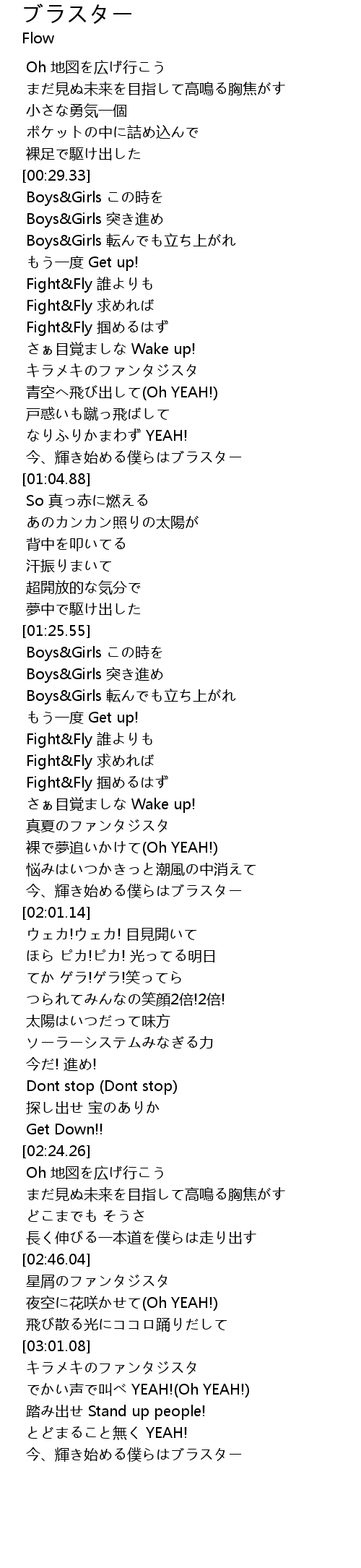 | [01:56.43] | 今、輝き始める僕らはブラスター |