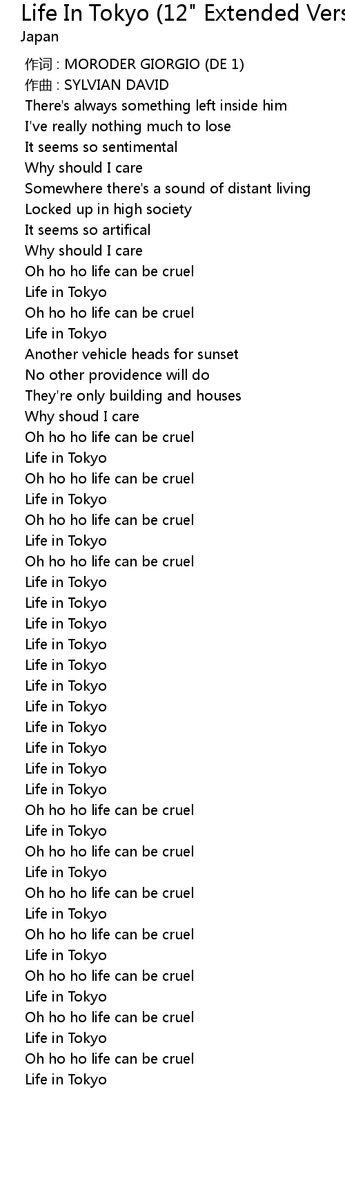 | [03:18.563] | Life in Tokyo |
