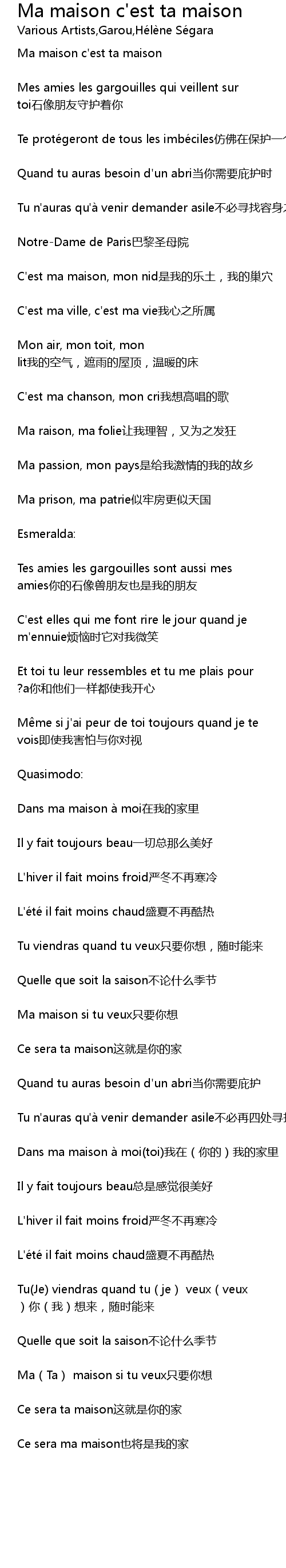 | [02:54.650] | Ce sera ma maison也将是我的家 |
