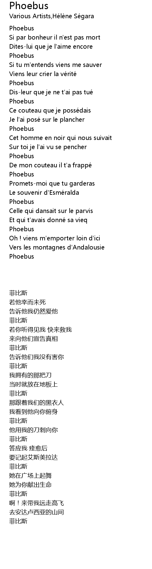 | Song | Phoebus |