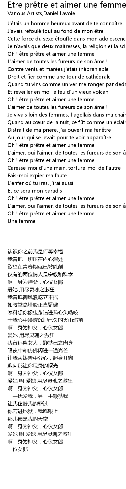 | [00:25.23] | Oh ! être prêtre et aimer une femme |