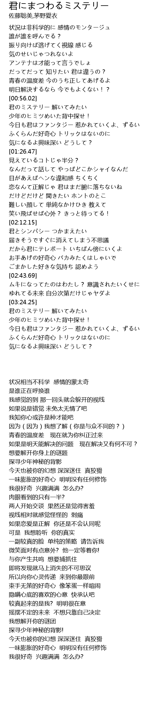 | [00:56.38] | 君のミステリー 解いてみたい |