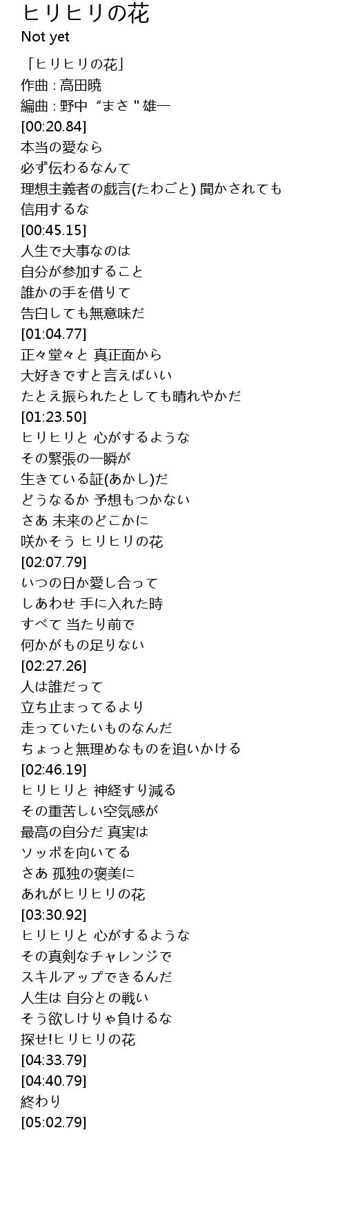 | [04:27.74] | 探せ!ヒリヒリの花 |