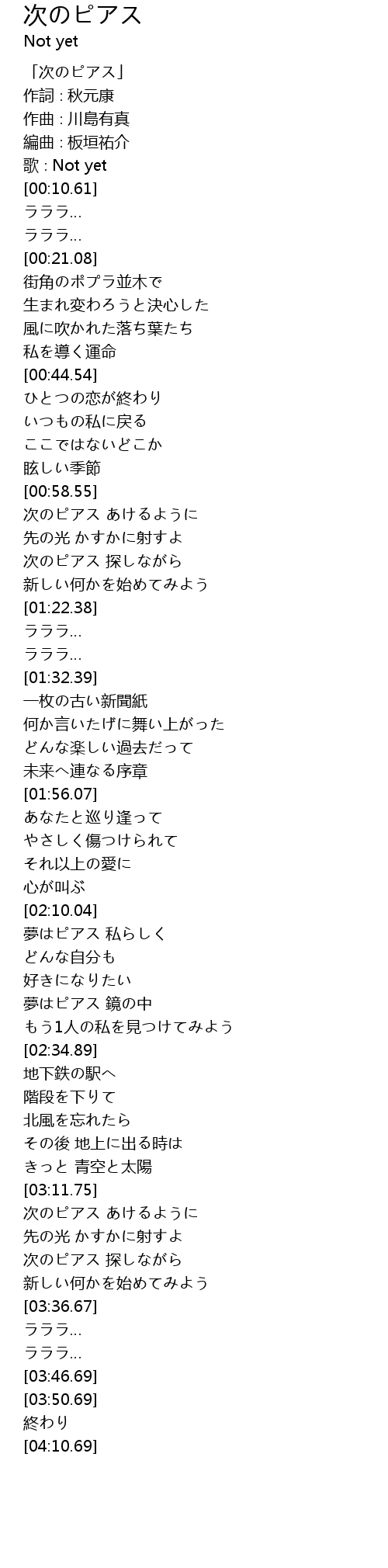 | [02:21.96] | 夢はピアス 鏡の中 |