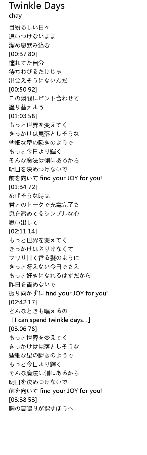 | [03:00.45] | I can spend twinkle days |