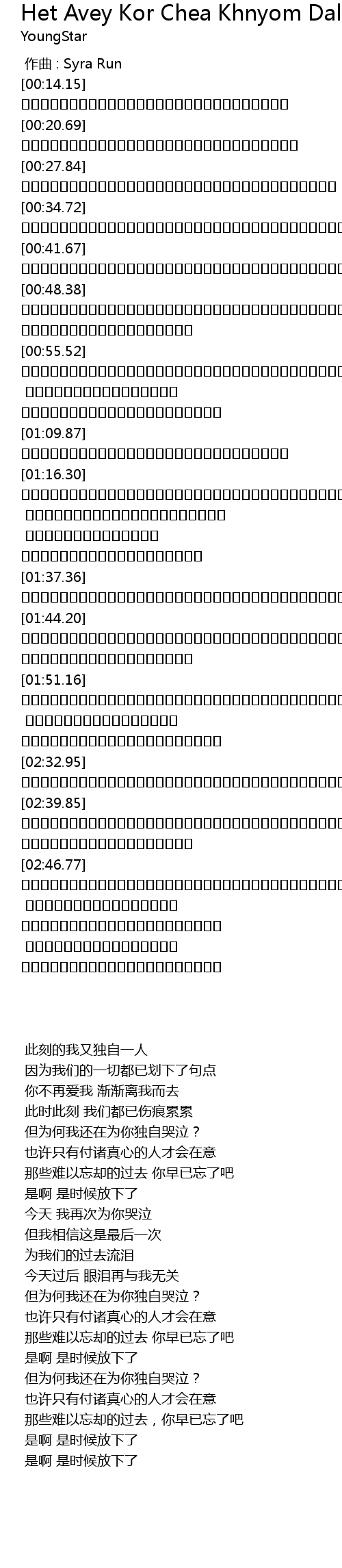 Het Avey Kor Chea Khnyom Dal Yum Mnak Aeng (Why Cry Alone) Lyrics