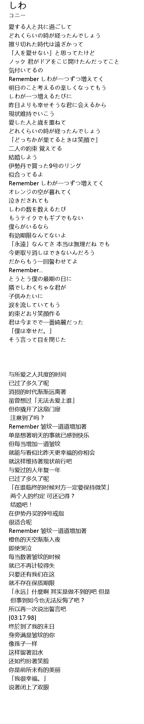 Remember しわが一つずつ増えてく |
