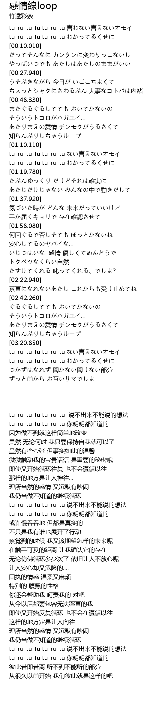 | [01:15.240] | tu-ru-tu-tu tu-ru-tu わかってるくせに |