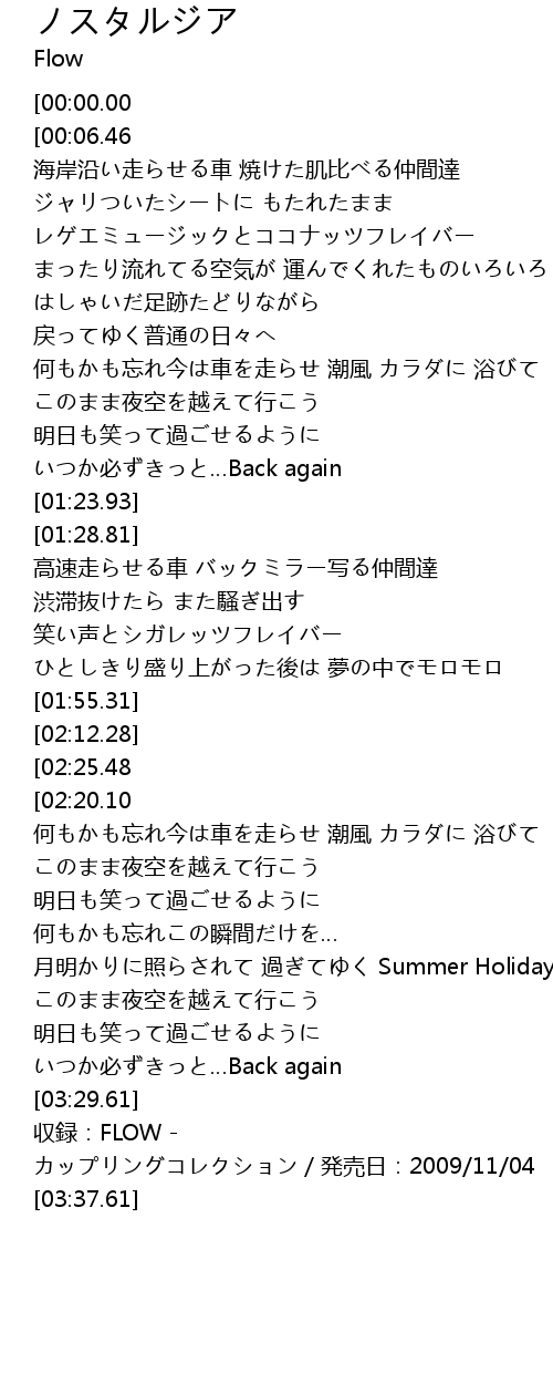 | [03:31.61] | 収録:FLOW - カップリングコレクション/発売日:2009/11/04 |