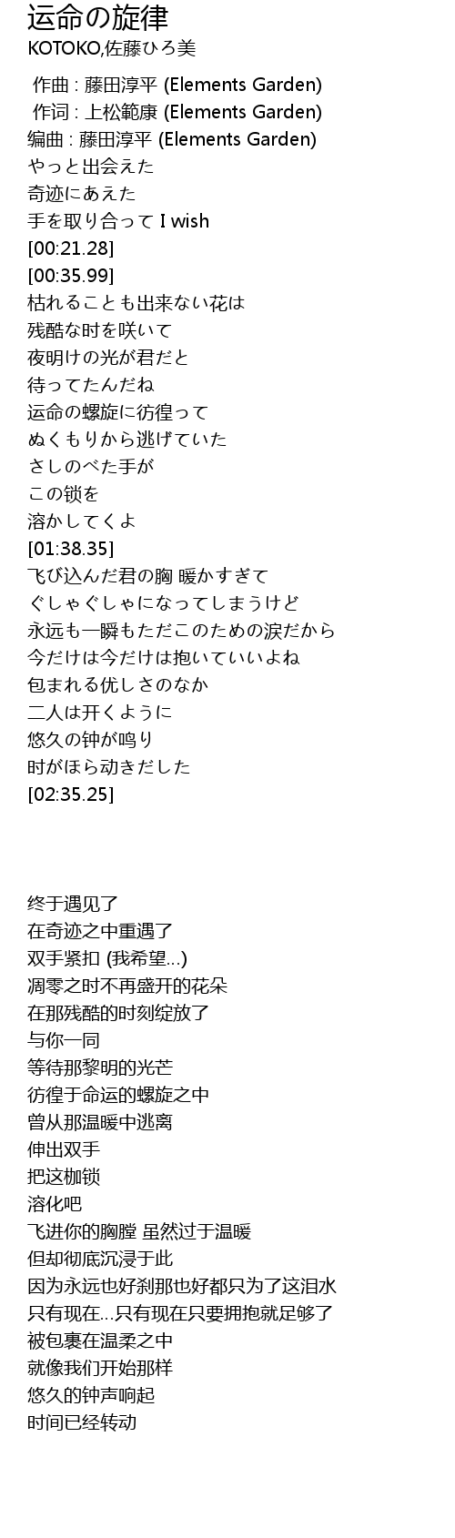 | [01:11.66] | 运命の螺旋に彷徨って |