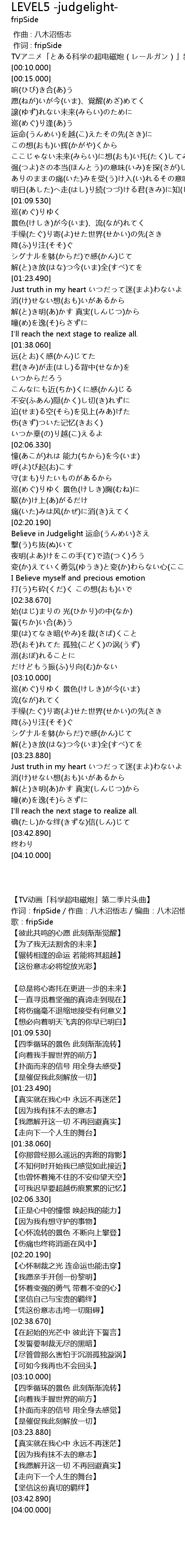 | [00:05.000] | TVアニメ「とある科学の超电磁炮(レールガン)」新オープニングテーマ |
