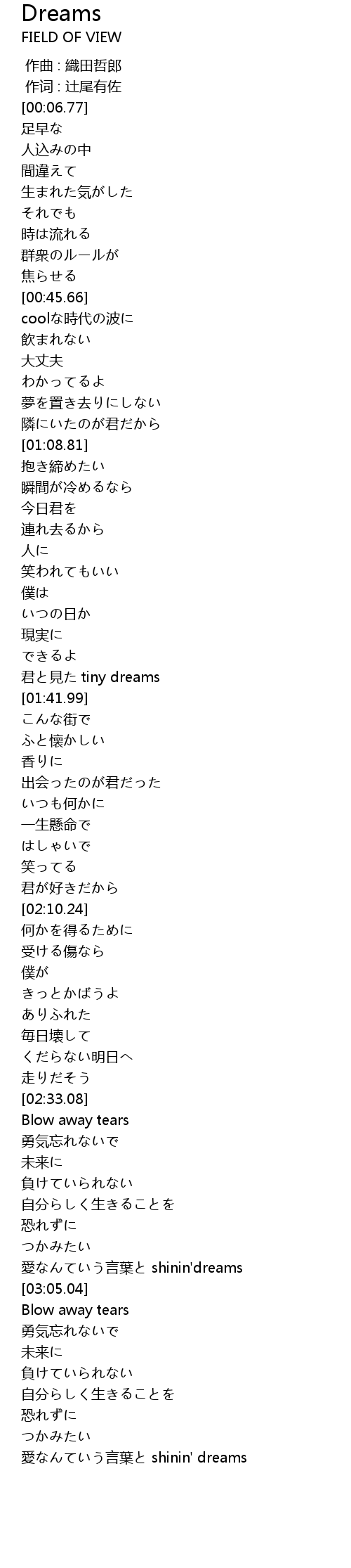 | [02:58.98] | 愛なんていう言葉と shinin'dreams |