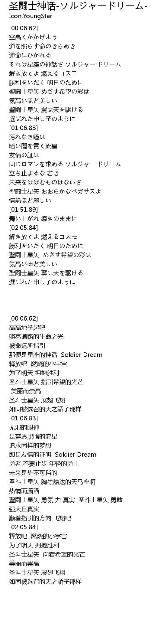 | [00:26.19] | それは星座の神話さ ソルジャー·ドリーム |